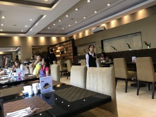 ここの朝食は最高。ビュフェ方式で飲食は自由に、そして会計は350ペソと破格でしす。いつも渡航時には必ず1回は寄ります。