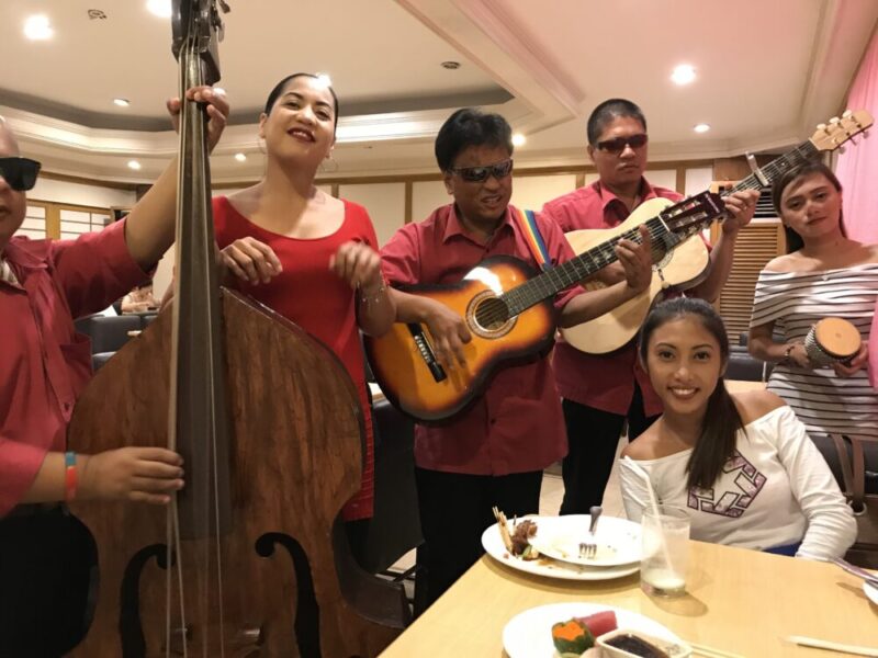 普段、なかなか聴けない曲のライブ演奏を聴きながら食事をしてアンヘレス最後の夜を満喫するのでした。