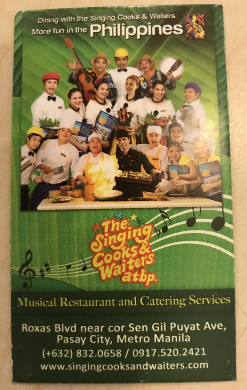 こちらが、そのレストランだが場所はパサイのロハス通り沿いでパフォーマンスが面白い。店の詳細はこちらのチラシでご確認ください。