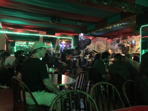 ライブバンドは入店と同時にエリック・クラプトンのTears Heavnが耳に入ってきて感動した。客のアメリカ人と仲良くなって話が盛り上がった。お互い歳も近かったので。