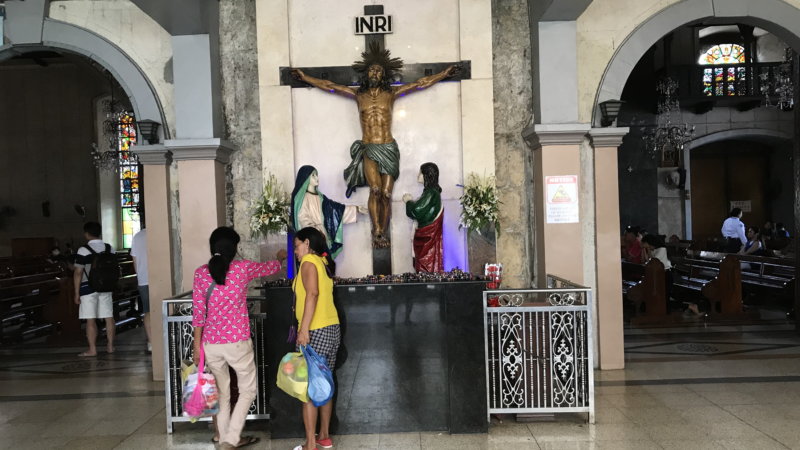 フィリピンは元来イスラム教徒でしたがマゼラン(スペインの征服者)の上陸によってカトリックに改宗させられたのです。