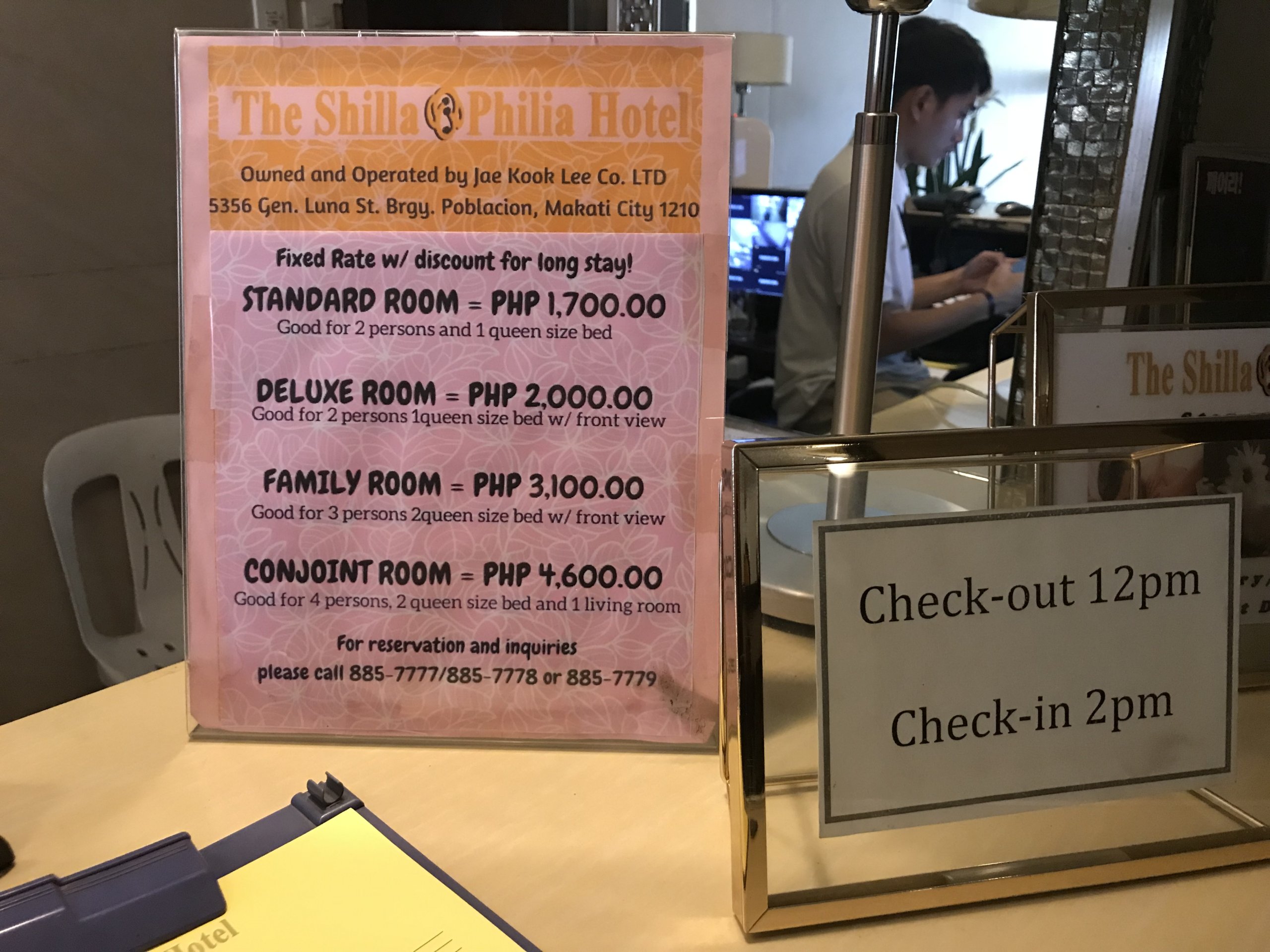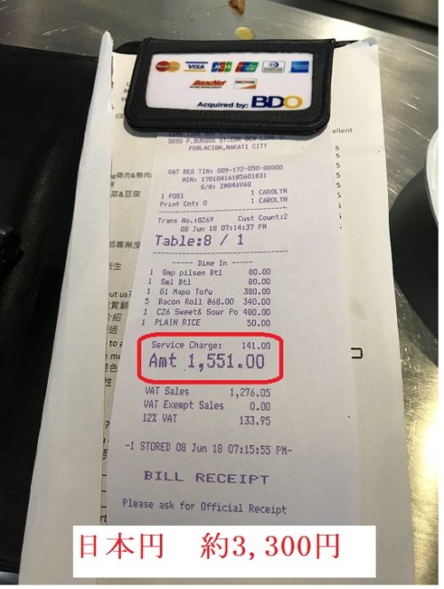 ネーム1行目はサービス、2行目は50ペソ