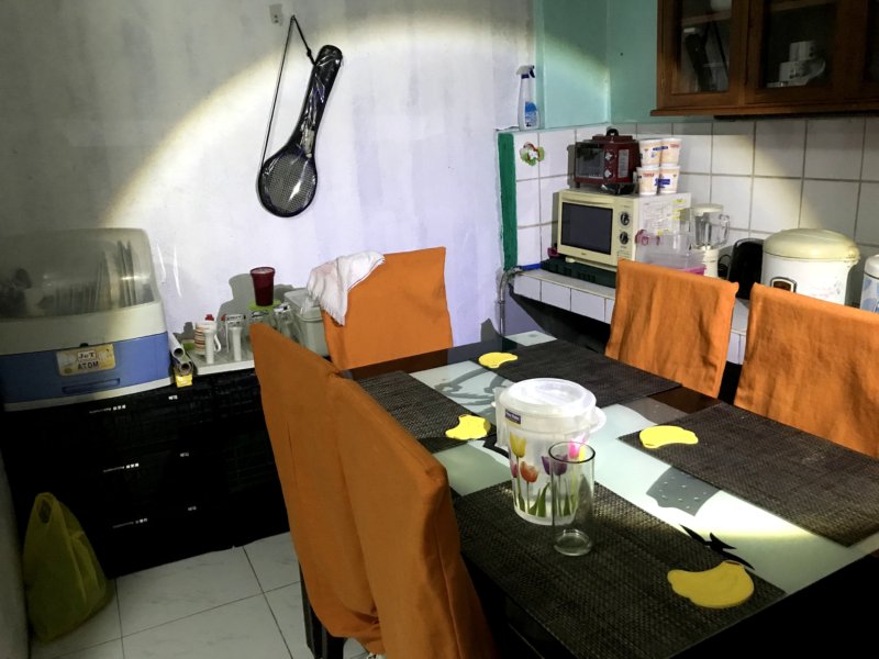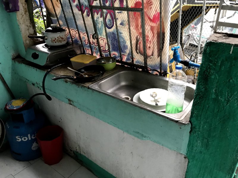 フィリピンの場合テーブル(左)が家の奥にありキッチン(右)が玄関の外にあります。部屋には換気房がありません