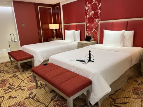 部屋の中はゴージャスで最高の設備でした。ベットはツイン、バスタブもありシャワールーム、トイレとそれぞれ独立してます。