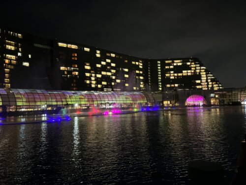 ヤシの木とシャンデリア型の街灯が南国の風を運びながら、都会の洗練と遊び心を絶妙にミックスしてる。ここに立つだけで、旅の始まりを感じる。