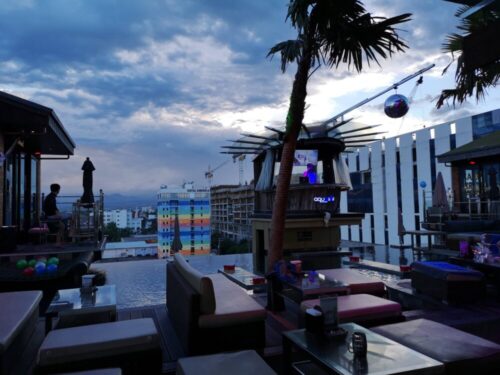 屋上にはプールがあり韓国人たちがバースデーパーティを盛り上げていた。ここはアンヘレスのナイトライフを象徴するようなルーフトップラウンジで、昼はプールサイドでのんびり、夜はDJの音楽とともに盛り上がるエンタメ空間になる。