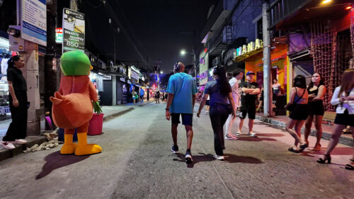 ウォーキングストリートに立ち並ぶGOGOバーなどの写真