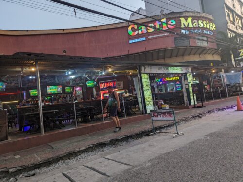 夜になると人通りが一気に増える。その流れは深夜まで続く。通りは何といってもGOGOバーがメインでKTVやMusic Barそしてレストランなど軒並み騒がしくなる。