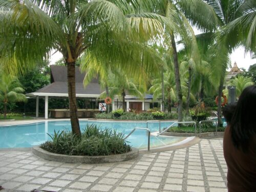 エドサシャングリラのプールサイドは、都会の中にいるとは思えないリゾート感たっぷりの場所です!🌴 広いプールに囲まれた緑豊かな庭園が特徴で、ファミリーにも人気なエリアになっています。