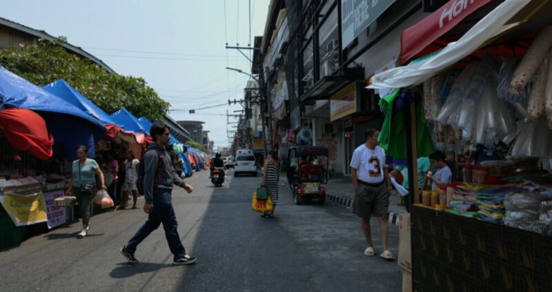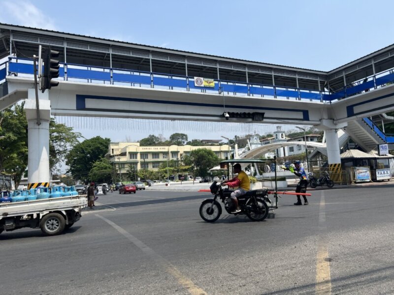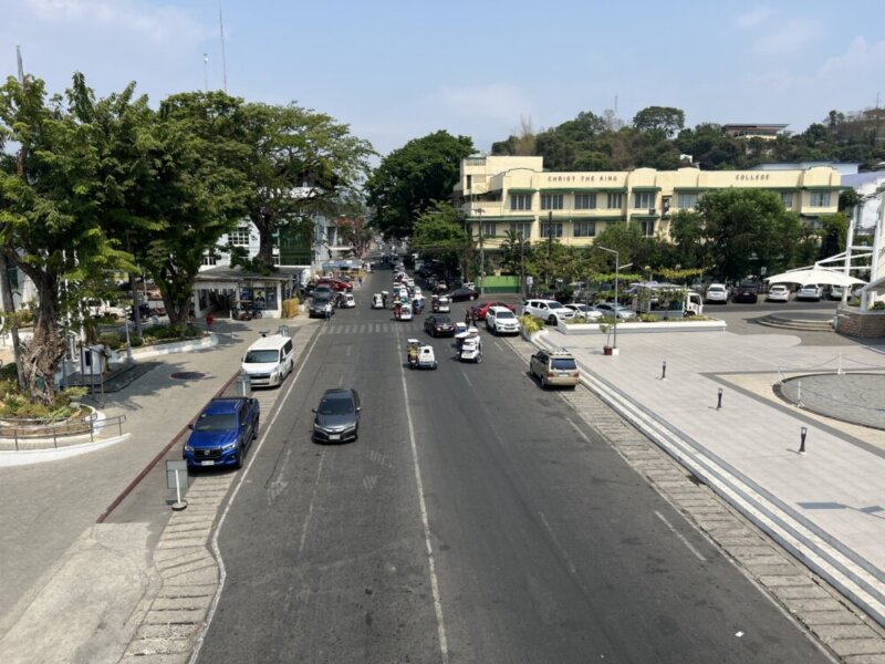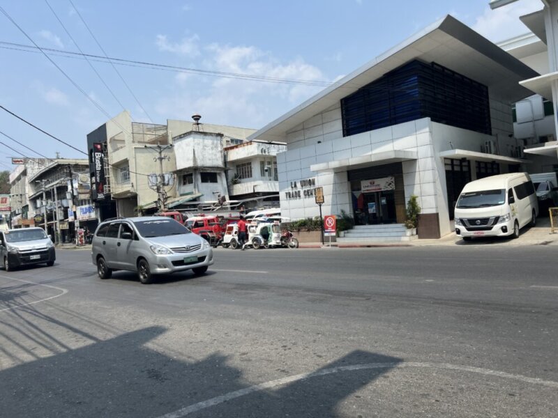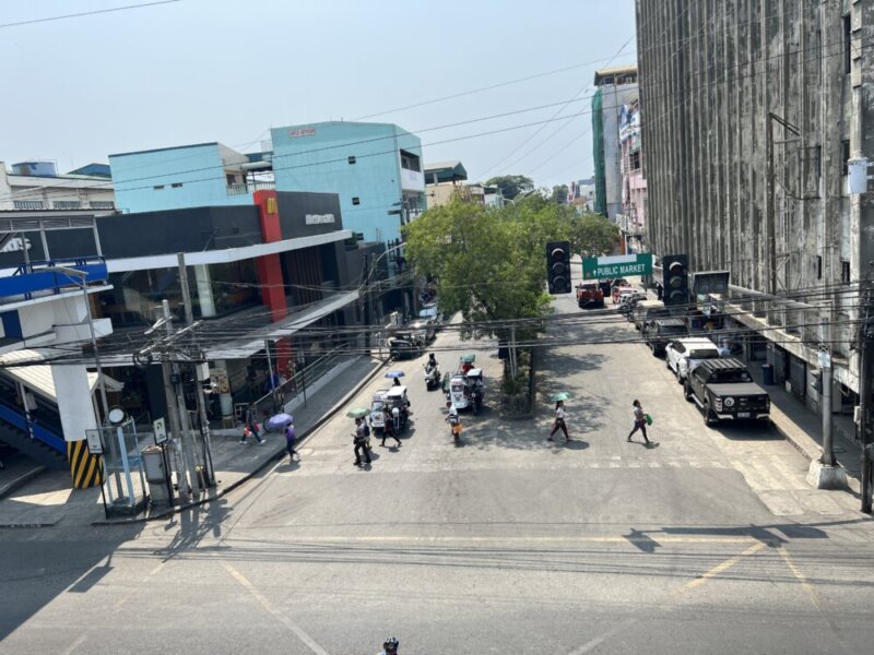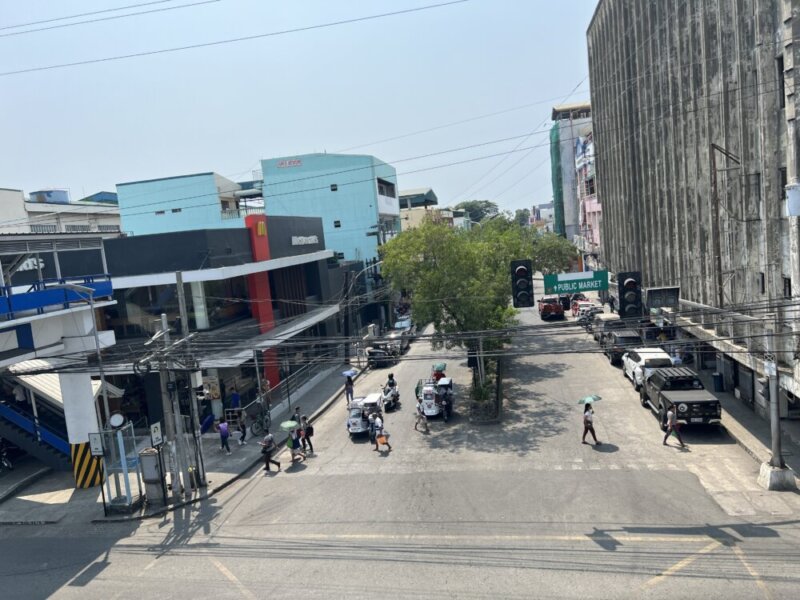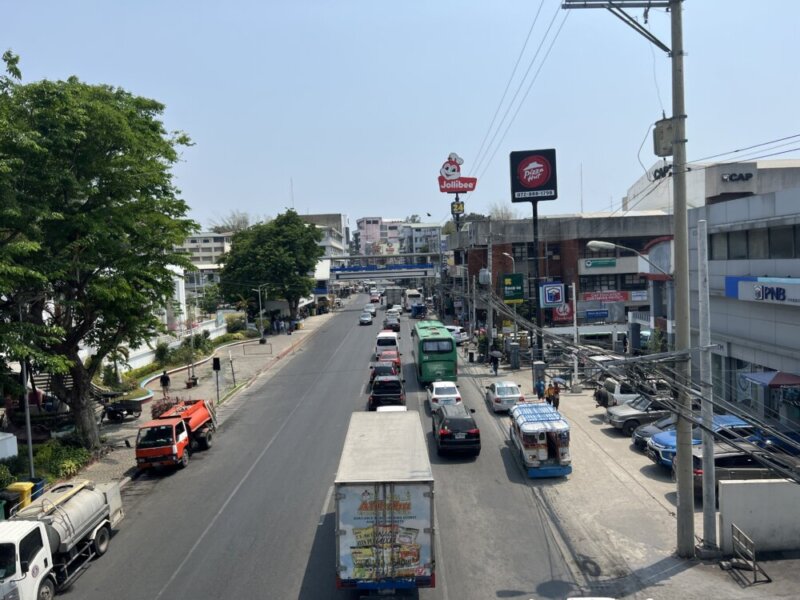 街の中心には歩道橋があり、そこからの撮影で右手は市役所があります。前方はフィリピンで有名なファーストフーズ店ジョリビーがあり後ろの方向にはマクドナルドがあります。