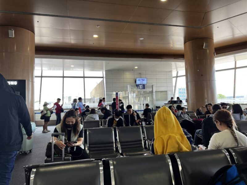 中国、台湾人の団体客の影響で長時間ラウンジで待機することになりました。フライト30分前になったらゲートへ向かいます。