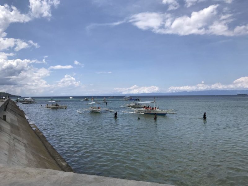 パナグサマビーチはダイバーたちがたくさんいます。モアルボアル観光の中心地で、街の中心に位置します。ホワイトビーチと対照的で人がたくさんいて賑やかです。