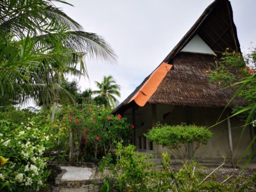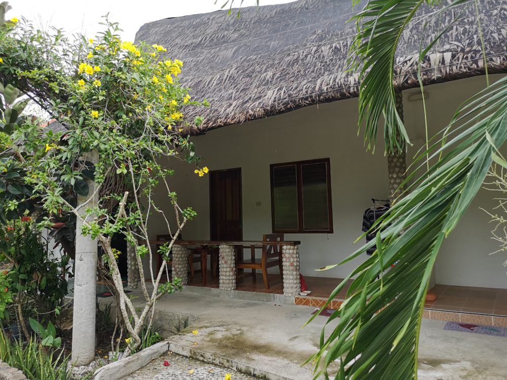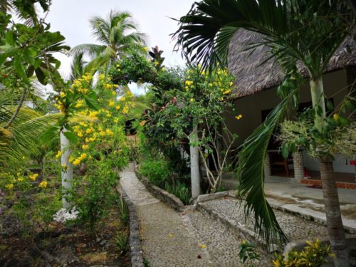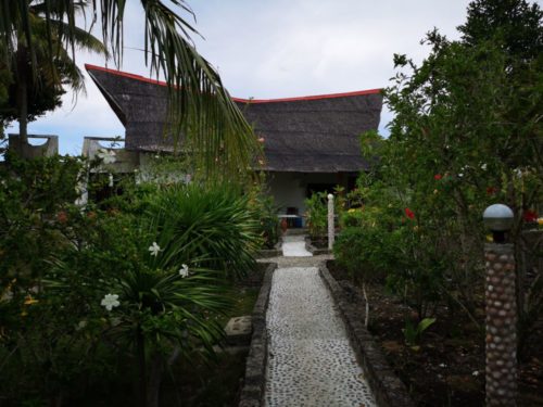チェックインしたらここの愛犬が部屋まで案内してくれました。周りには店などがありませんのでトライシクルをエントリーするかレンタルバイクに乗って買い物に行くことになります。