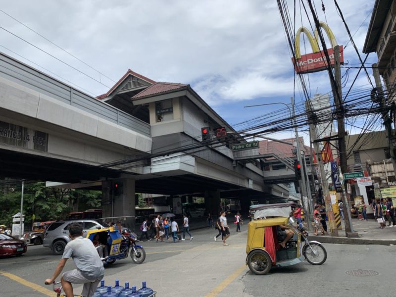少し歩きますがホテルから徒歩圏内に高架鉄道LRTのペドロ・ヒル駅があります。マニラに少し慣れたら利用すると色んな所へ渋滞なしで移動できます。北に行けばイントラムロス方面、南に行けばバクララン・マーケットなどに低料金で行くことができます。