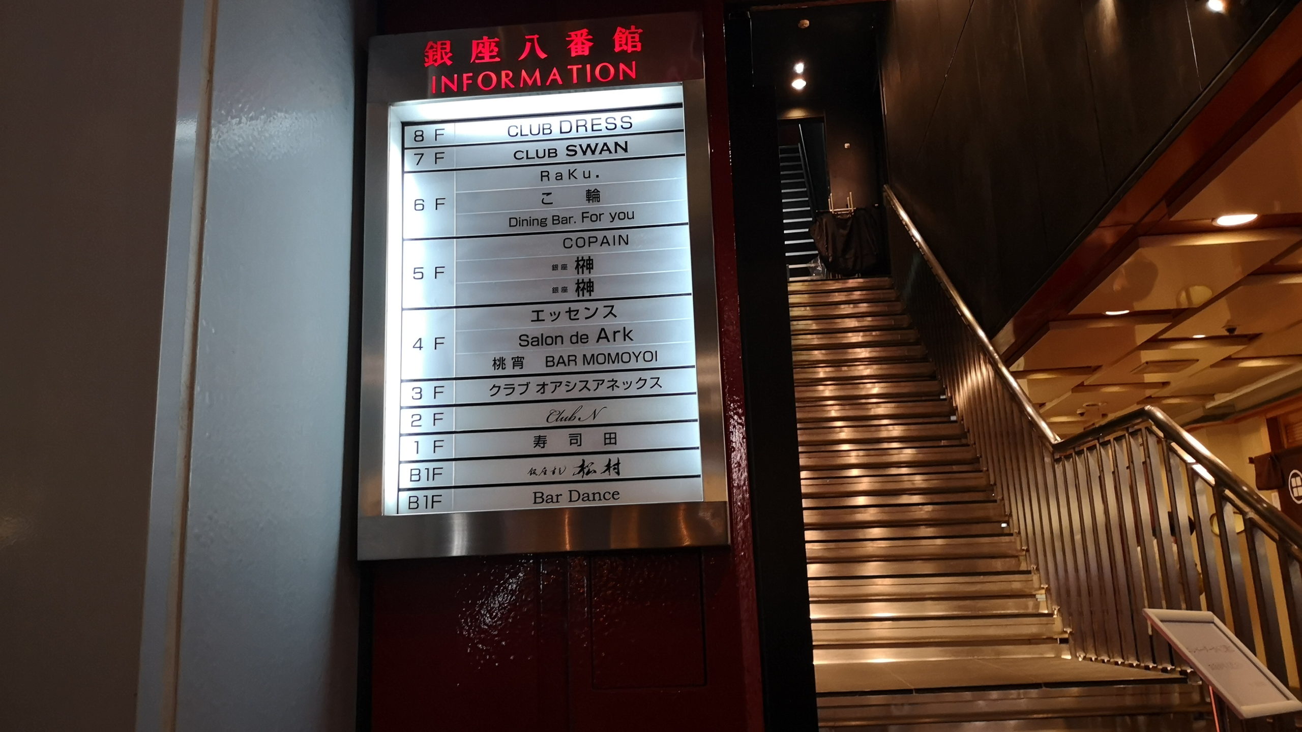 銀座の並木通り沿いにある有名なポルシェビルの左隣銀座八番館のクラブ、サファイアで飲むことに