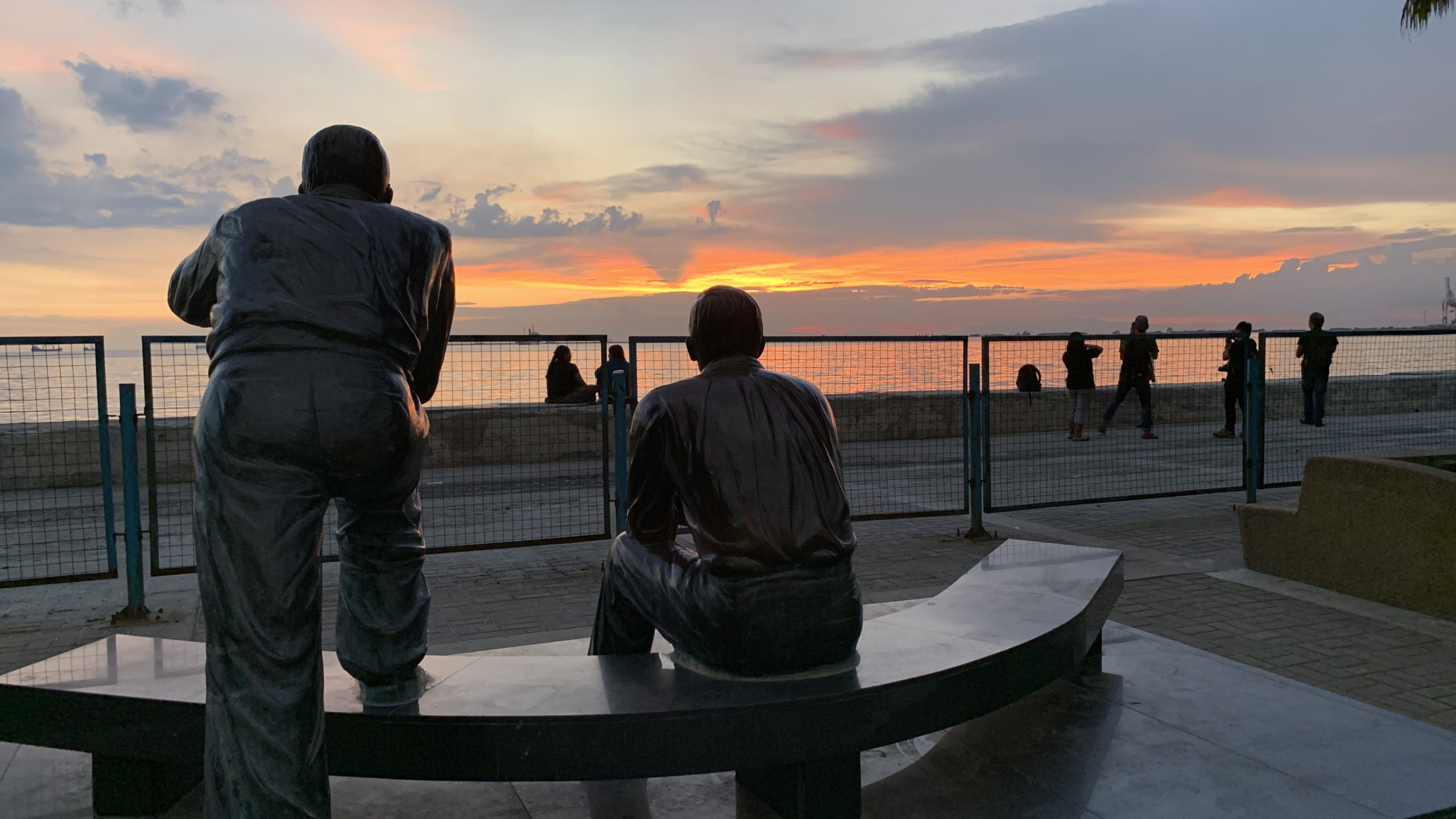 ある節では世界三大夕日の1つだと言われています。ここマニラ湾は夕暮れ時になるとたくさんの人が訪れます。観光客や地元民が大勢来ます。なぜなら涼しいからです。一般の家庭ではエアコンもない家も珍しくありません。蒸し暑い家の中で過ごすより圧倒的に快適だからです。