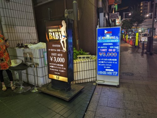 日本のリトルマニラと異名をとるだけあってフィリピン系の店が密集していてまるでマニラに来たような感じがした。店は数件まわっただけなのでよくわからないがいずれにしても女の子の数が少ないことと年齢層が少し高いようなイメージでした。