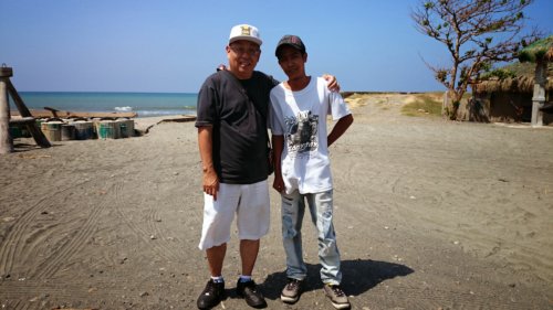 海岸までトライシクルのお兄さんに乗せてきてもらいました