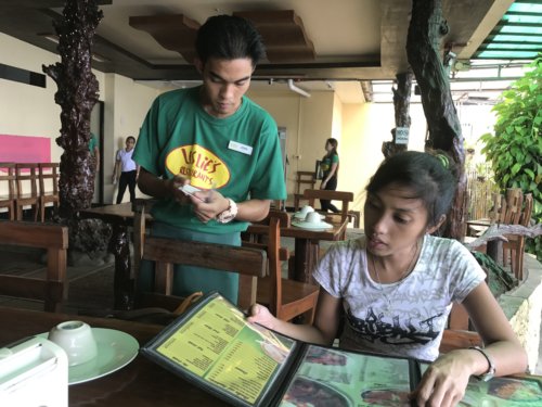 店内は冷房が利いていて涼しかった。こんな頃のフィリピンにしては珍しかった