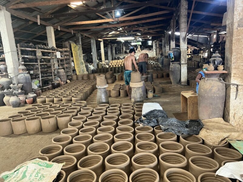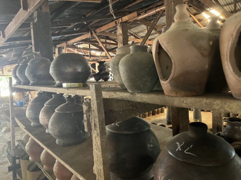 職人によって作られた陶器は、太陽の光にあてないよう日陰で3週間ほど乾燥させ釜で最低1週間は焼く。粘土から作品が完成するまでに1ヶ月ほどかかるこの製法は、中国から伝わった製法とのこと。
